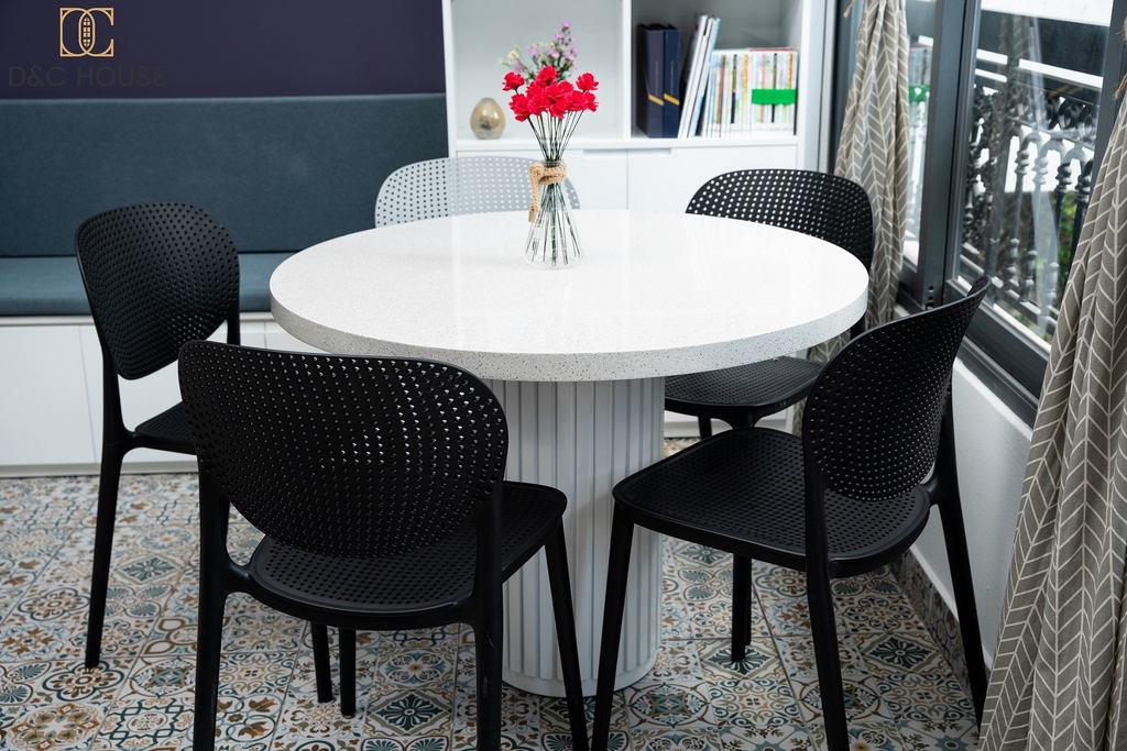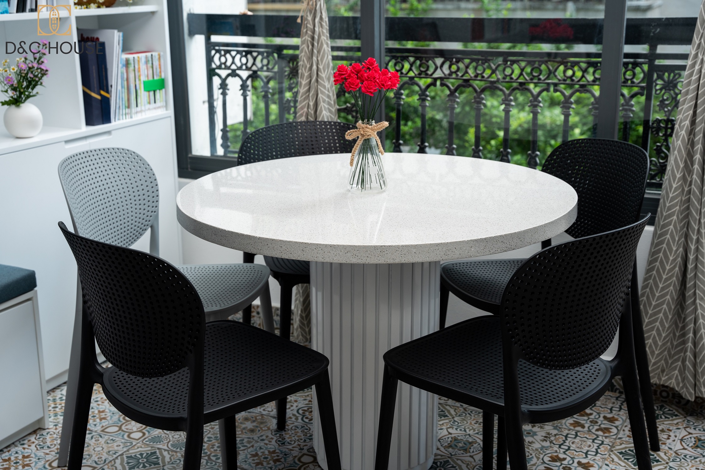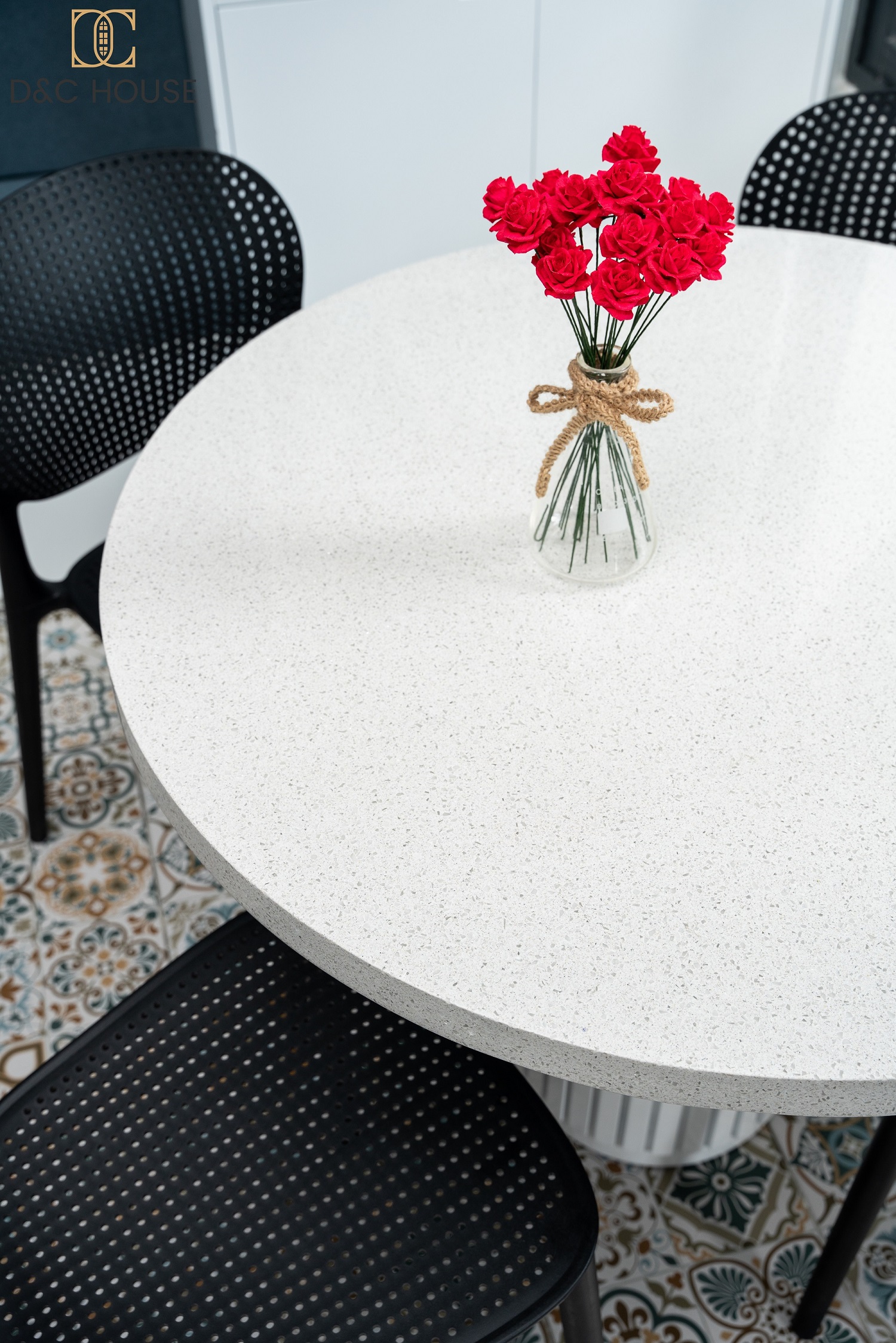 # BÀN ĂN CÓ ĐỘ BỀN RẤT CAO: Độ bền tiêu chuẩn của mặt bàn đá là 10 năm. Vì vậy, bạn có thể yên tâm về chất lượng của sản phẩm khi sử dụng vật liệu này cho nội thất nhà mình.
