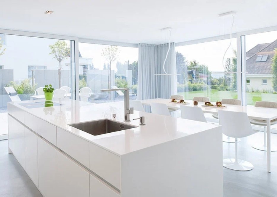 Mặt bàn bếp: Với đặc tính liền mạch và không thấm nước, đá bếp Solid Surface là lựa chọn hàng đầu cho không gian bếp sang trọng.