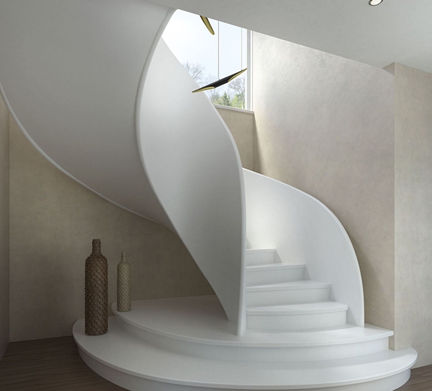 Đá solid surface là một lựa chọn tuyệt vời khác cho việc ốp cầu thang.