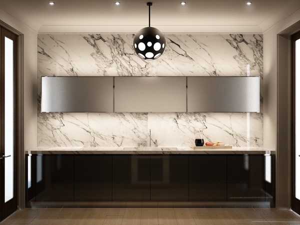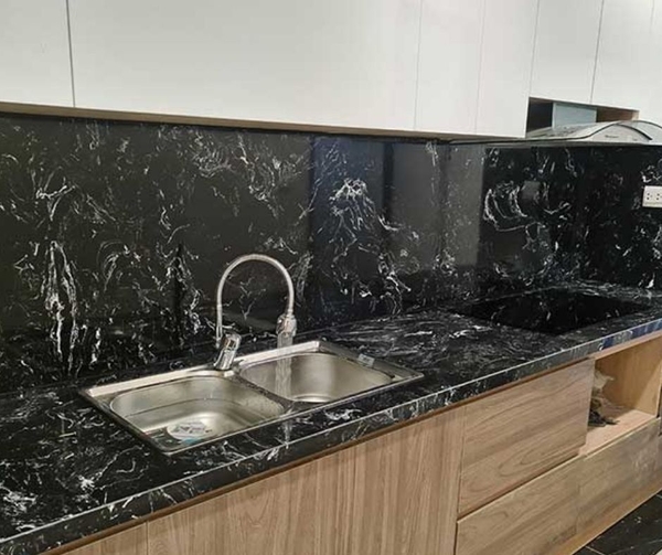 Mẫu Marble đen vân trắng là sự kết hợp giữa màu đen sang trọng và các đường vân trắng tinh tế tạo nên một không gian bếp hiện đại và đẳng cấp.