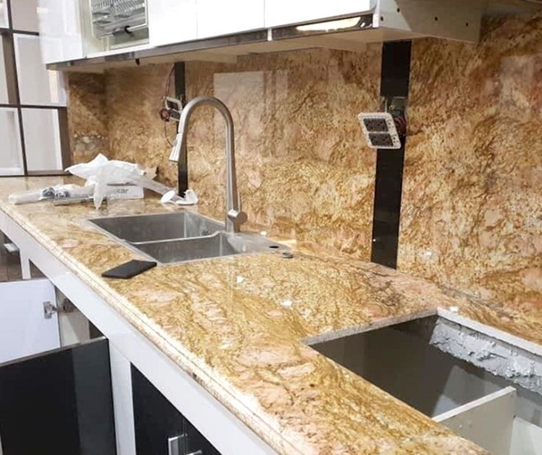Với màu vàng ấm áp và những đường vân độc đáo, mẫu đá này mang đến vẻ đẹp rực rỡ và ấm cúng cho căn bếp của bạn. Đây là sự lựa chọn hoàn hảo cho những ai yêu thích phong cách nhiệt đới hoặc cổ điển.