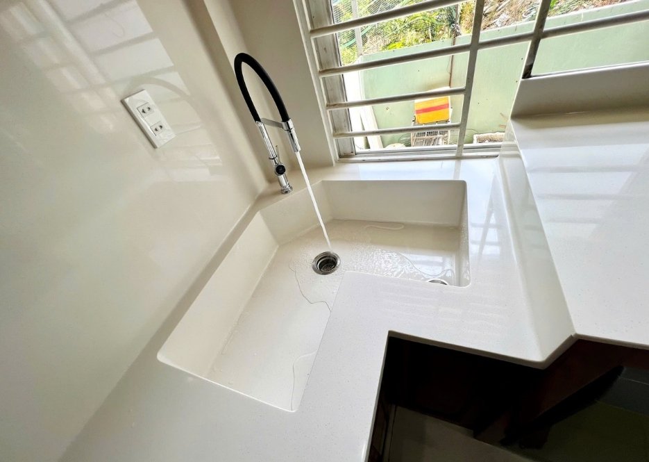Độ bền và tính dễ dàng vệ sinh của đá Solid Surface giúp đảm bảo không gian bếp luôn sạch sẽ và đẹp mắt.