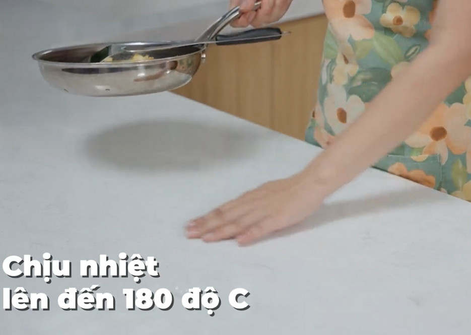Đá Solid Surface Edenstone có khả năng chịu nhiệt tốt, không bị biến dạng hay phai màu khi tiếp xúc với nhiệt độ cao.
