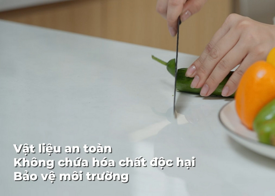 Bề mặt đá Solid Surface Edenstone có độ cứng cao, chống trầy xước hiệu quả, giữ gìn vẻ đẹp hoàn hảo cho không gian nội thất.