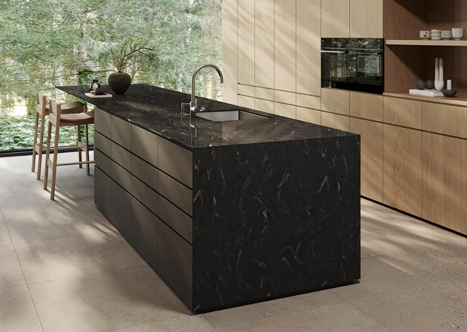 Bếp: Mặt bếp, đảo bếp, ốp tường bếp, bồn rửa... Himacs (LX Hausys) mang đến không gian bếp sang trọng, hiện đại và dễ dàng vệ sinh.
