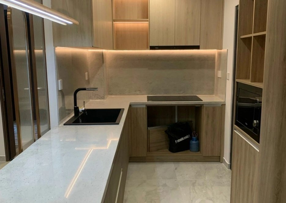 Mặt bếp và đảo bếp: Tạo nên một căn bếp cá tính, mạnh mẽ và sạch sẽ.