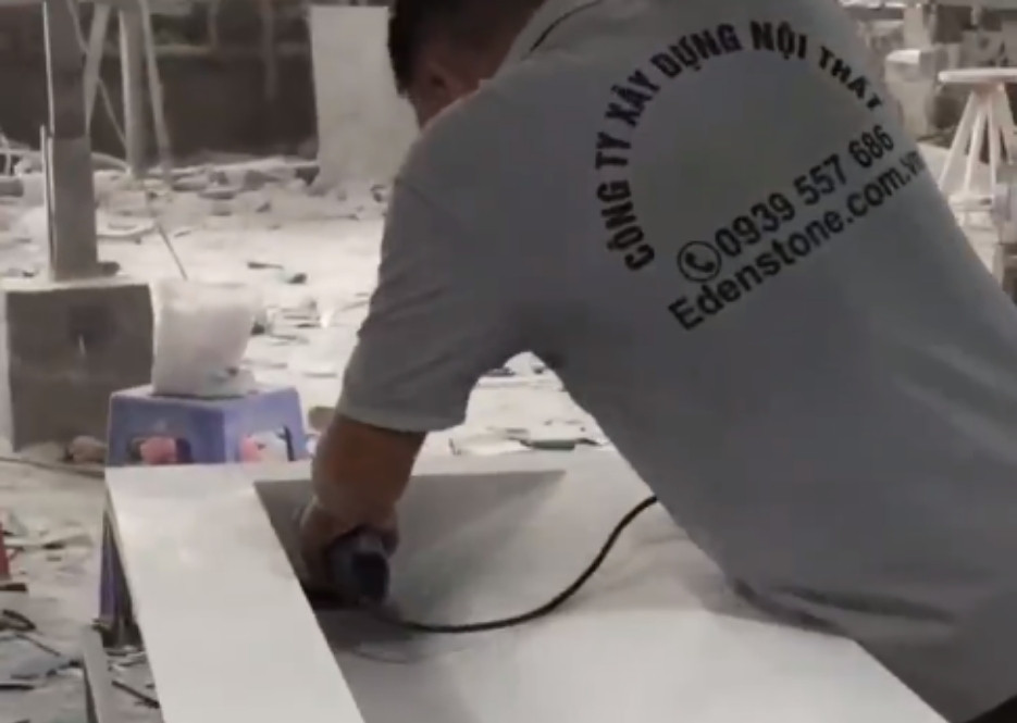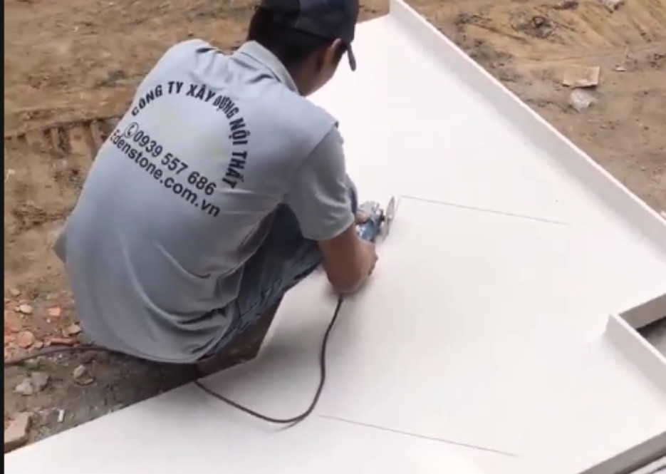 - Lắp đặt tỉ mỉ tại công trình: Kỹ thuật viên lành nghề của Edenstone thực hiện việc lắp đặt, đặc biệt chú trọng khâu ghép nối liền mạch và cố định chắc chắn. Các mối nối được xử lý tinh xảo, gần như vô hình, tạo nên vẻ đẹp hoàn hảo cho bề mặt.
